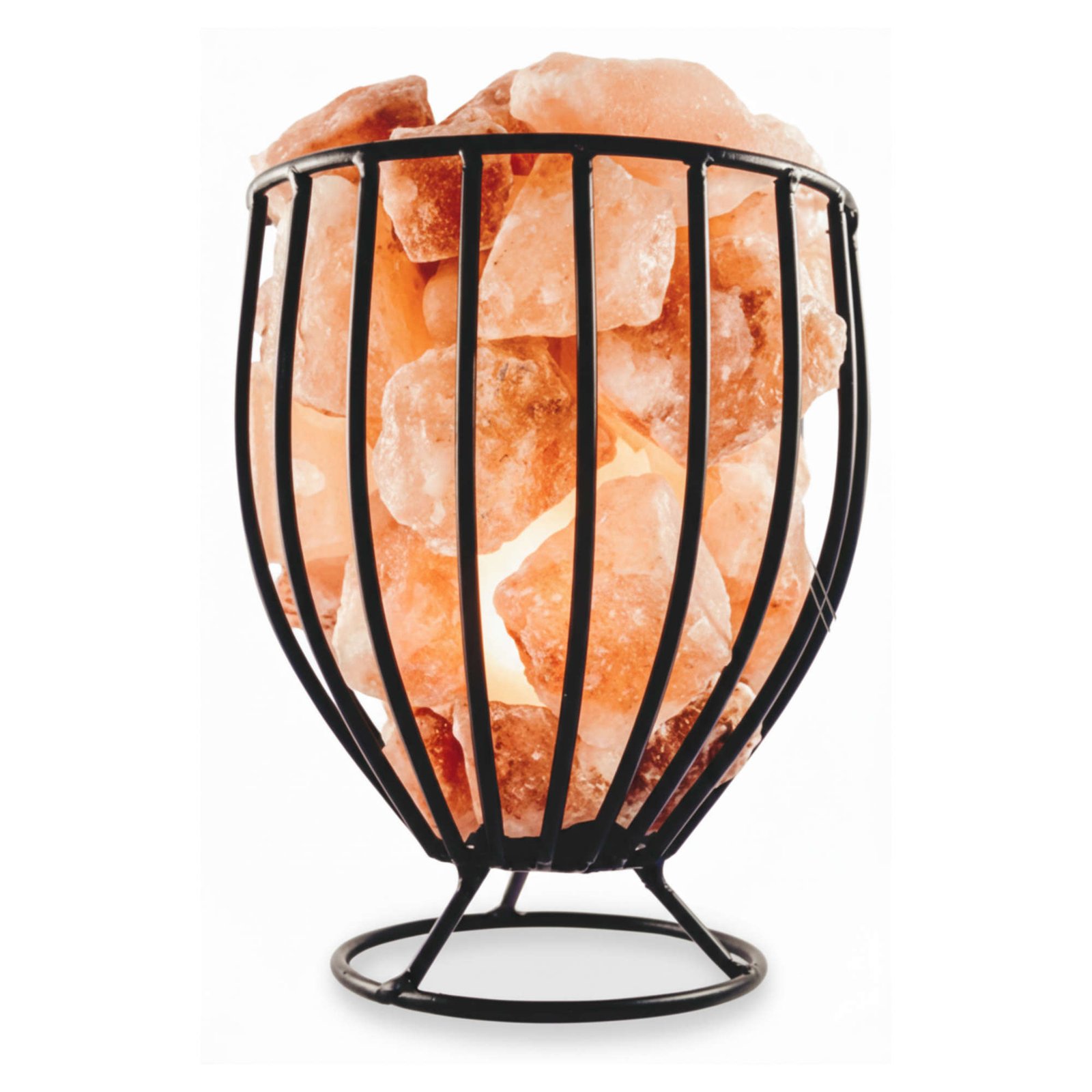 • Metal basket salt lamp with crystals