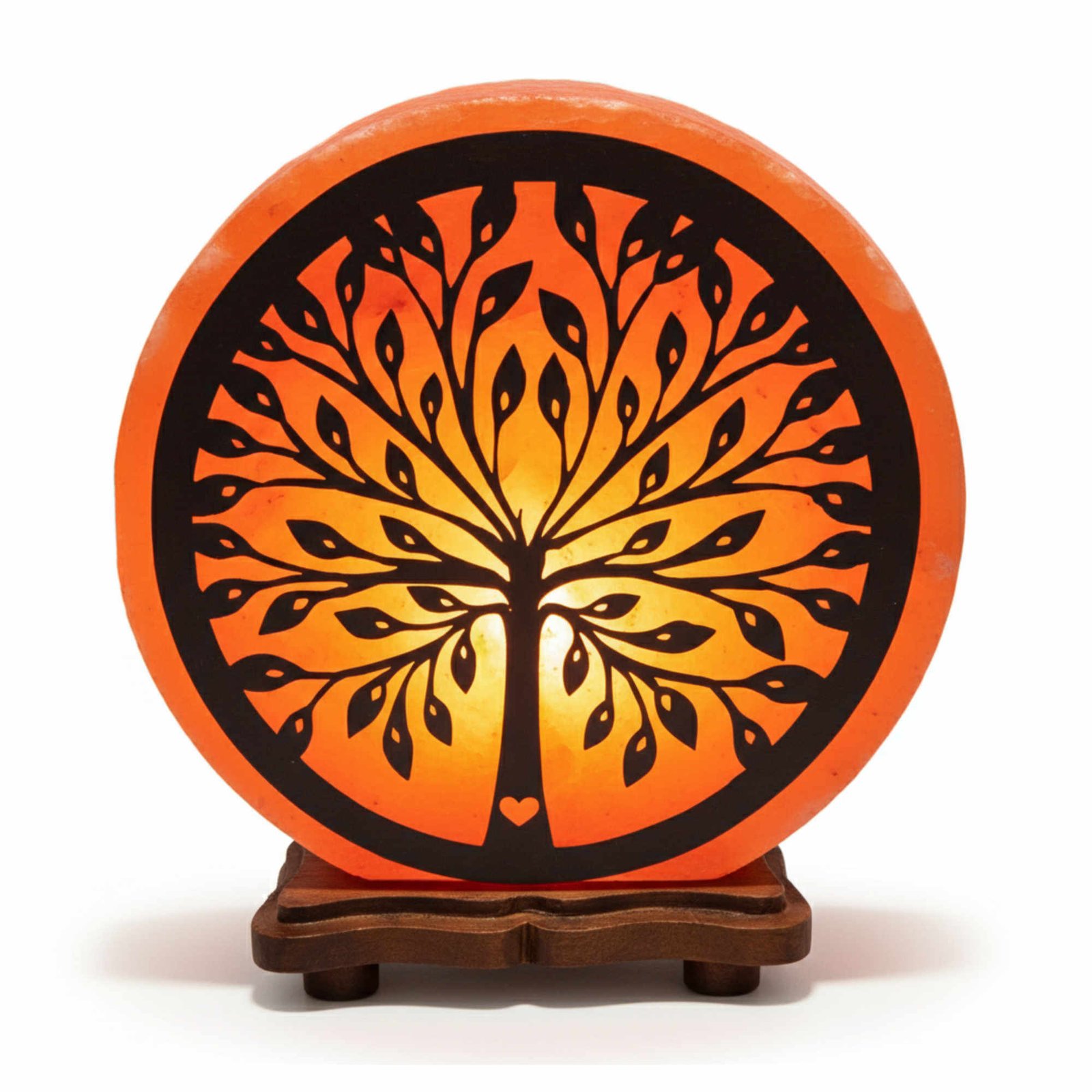 The Tree 3D Himalayan Salt Lamp showcases a detailed cut-out tree pattern that comes to life when illuminated. The inner glow highlights the branches and leaves, creating a visually balanced and eye-catching effect. Mounted on a wooden base, it offers both stability and a premium finish.
